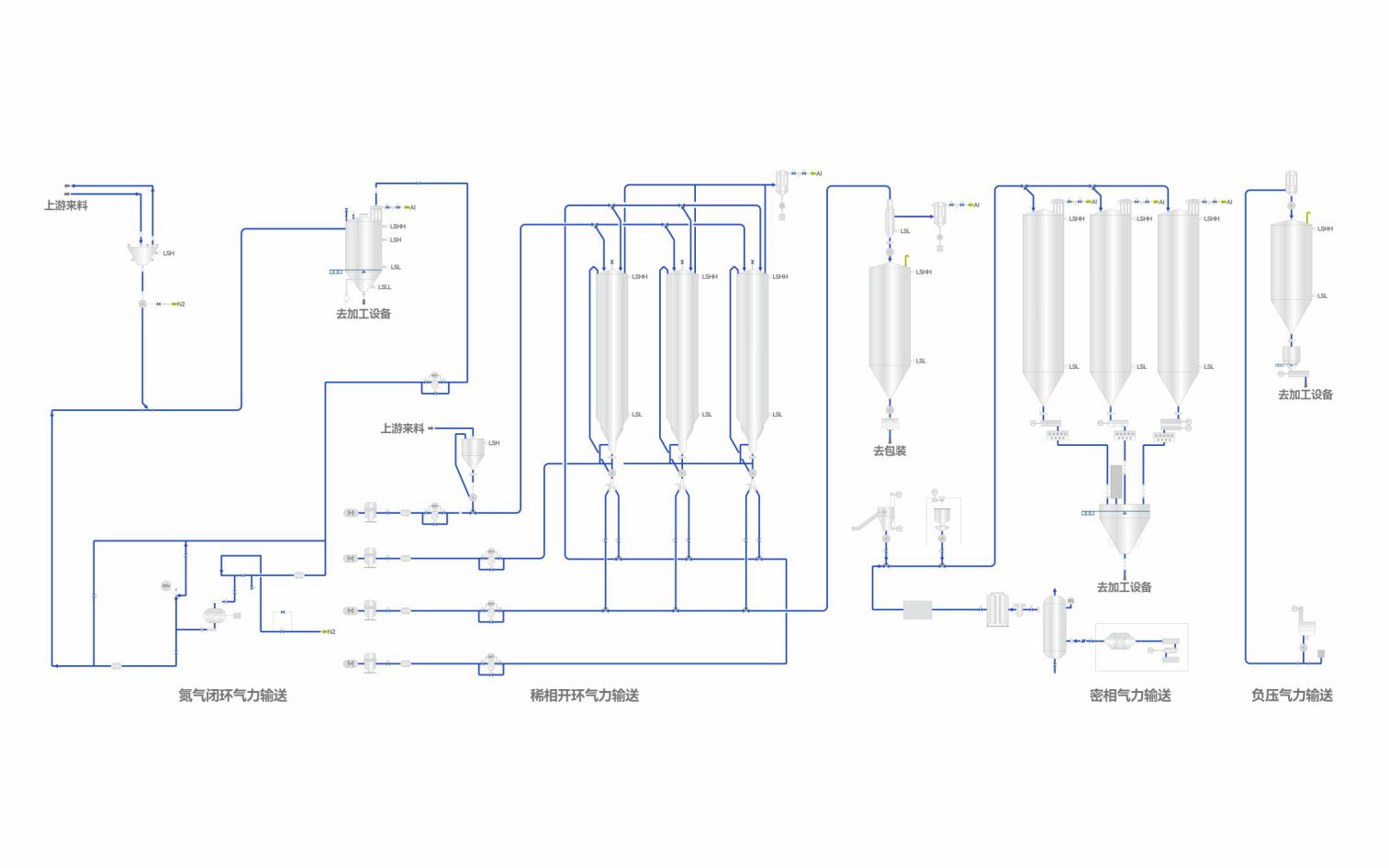 氣力輸送系統(tǒng)是在不同加工設(shè)備之間輸送粉末和顆粒的最合適方式。