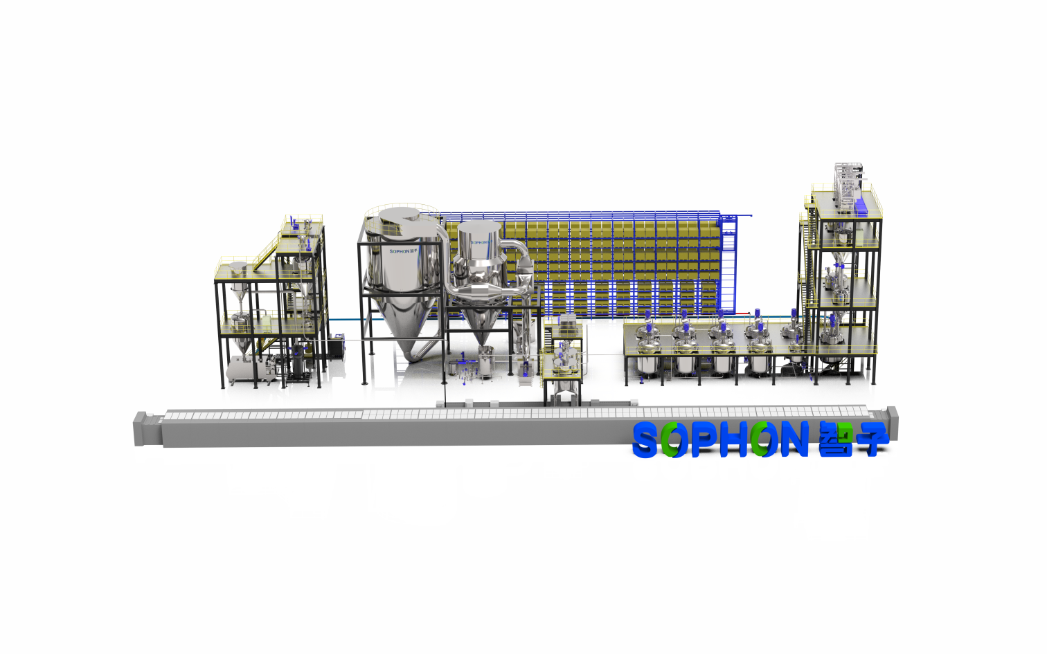 提供不同鋰源、碳源、磷源的全自動拆包和精準計量輸送系統,提供各種工藝路線的設備落地 方案,提供后段造粒、燒結、粉碎、批混、篩分、除磁、包裝等工序的全自動生產設備系統落地 和產線全生命周期的管理服務。